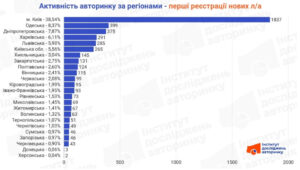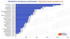 Активні регіони також включають Одеську, Дніпропетровську, Харківську, Львівську та Київську області, де за місяць зареєстрували від 200 до майже 400 нових автомобілів.