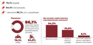Всеукраїнське опитування показало, що 86,1% українців вважають необхідним запровадження обов’язкового використання сертифікованих мотошоломів. Дослідження провів Київський міжнародний інститут соціології (КМІС) на замовлення ГО «Життя» до Тижня безпеки дорожнього руху.