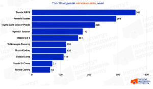 - Кросовери домінують: 9 із 10 найпопулярніших моделей — SUV.