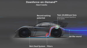 Особливість Speirling — два потужні вентилятори, вбудовані в кузов із вуглепластику, які відкачують повітря з-під днища, створюючи додаткову притискну силу. Вентилятори розвивають до 23 000 об/хв, забезпечуючи 2000 кг притискного навантаження. Легка вага суперкара — всього 1300 кг — дозволяє автомобілю буквально «прилипати» до траси, гарантуючи неймовірну стабільність у поворотах з навантаженням понад 3g.
