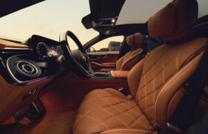 Салон пропонує понад 400 комбінацій оздоблення. Традиційну шкіру доповнює штучна шкіра ARTICO, поєднана з текстилем Mirville (льон із переробленого поліестеру). Використані також нові матеріали, наприклад, деревина з відкритими порами зернового дуба, які підкреслюють преміальний характер салону.