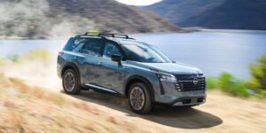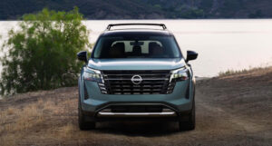 Зовні Pathfinder вирізняється оновленою решіткою радіатора, новими елементами переднього бампера та свіжими кольорами — зокрема, новим відтінком Baltic Teal. Емблеми тепер мають сатинове покриття, а у версіях SL і Platinum з’явилися чорні рейлінги та нові 20-дюймові колісні диски.