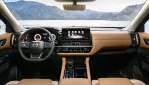 Усередині — значно більше технологій. Центральний екран збільшився до 12,3 дюйма і тепер підтримує бездротові Apple CarPlay та Android Auto. У дорогих комплектаціях встановлено цифрову панель приладів такого ж розміру. Оновлені матеріали оздоблення, нове підсвічування та напис «Pathfinder» на передній панелі додають салону преміальності.