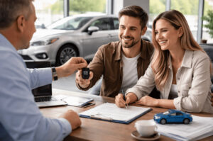 Переоформлення авто можливе без відвідування МВС. Продавець формує договір у застосунку, покупець підписує його «Дія.Підписом», обирає номерні знаки та тип техпаспорта. Готові документи надсилаються поштою.
