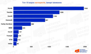В сегменте импорта подержанной техники структура спроса более «премиальная»: помимо Honda, Yamaha и Suzuki, украинцы активно ввозят Kawasaki, Harley-Davidson, BMW, Ducati, Triumph и KTM. Это сравнительно небольшая, но стабильная часть рынка, ориентированная скорее на эмоции, чем на утилитарность.