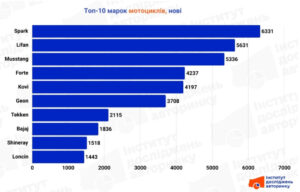 Рынок новых мотоциклов практически полностью сформирован бюджетными брендами. Абсолютными лидерами стали Spark, Lifan и Musstang. Также высокие продажи демонстрируют Forte, Kovi, Geon, Bajaj, Shineray и Loncin.
